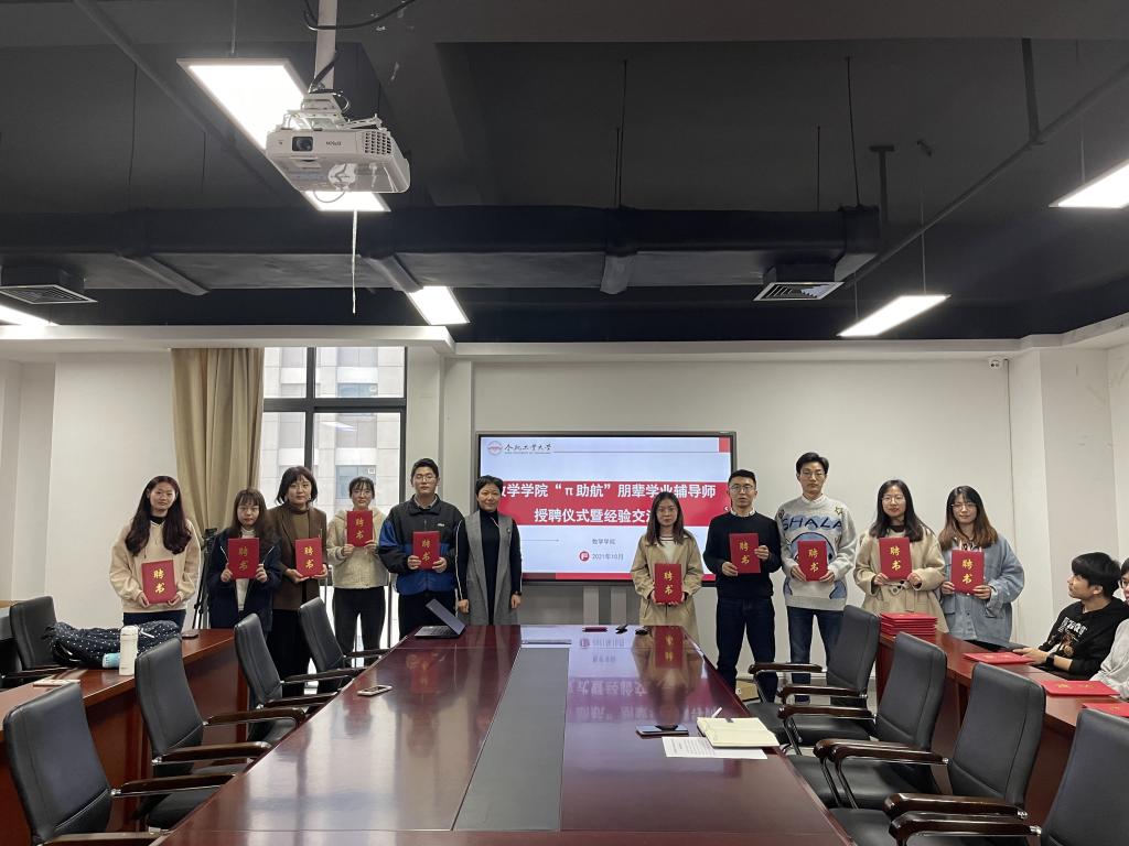 为进一步发挥大学生朋辈教育作用,更加科学有效地为低年级学生提供课业辅导和学业指导,10月19日下午,数学学院“π助航”朋辈学业辅导师授聘仪式暨经验交流会在翡翠科教楼B座1710举行。仪式上,学院相关负责人宣读了《关于聘任訾昭等26名同学为数学学院20...