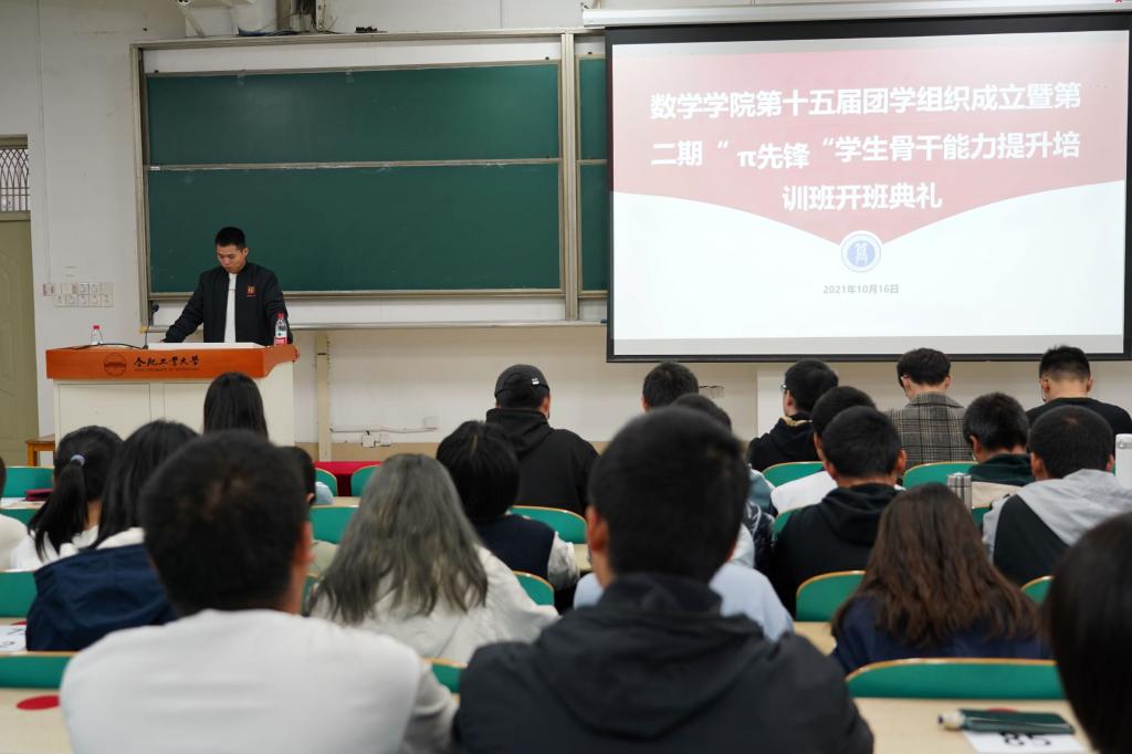 10月16日下午,数学学院第十五届团学组织成立暨第二期“π先锋”学生骨干能力提升培训班素质拓展活动在翡翠湖校区三教102举行。学院团学组织学生干部、年级主要学生骨干及部分优秀学生代表参加活动。仪式上,数学学院相关负责人宣读了《数学学院第十五届团...