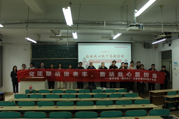 12月28日下午,数学学院在翡翠湖校区5教201室开展“志愿青春、数动我心”志愿服务活动。本次活动由数学学院应用数学研究生党支部联合数学学院研究生会共同举办,邀请了数学学院工程数学教学部教工党支部郭庆和赵德勤2位老师以及10名研究生同学为60余名本科...
