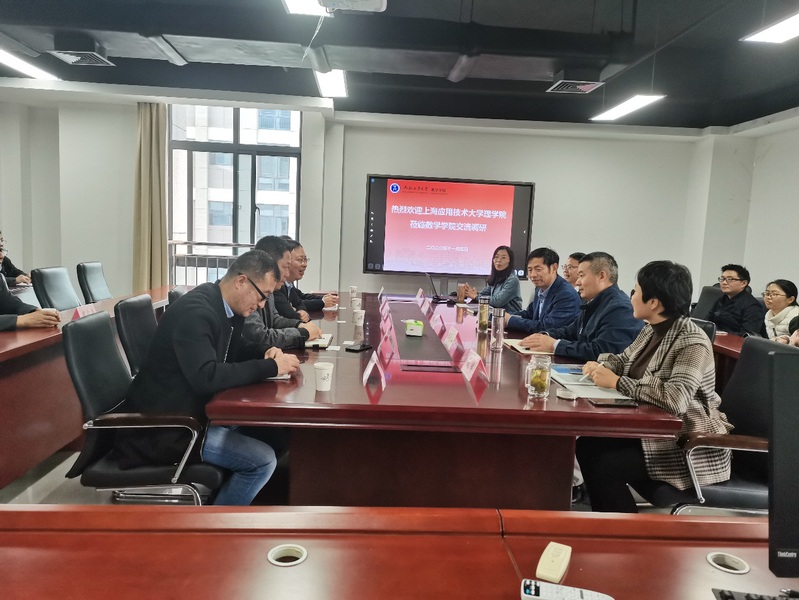 2020年11月5日下午,上海应用技术大学理学院院长李以贵、副院长王凤超一行来数学学院调研交流。学院领导班子、博士生等参加了座谈会。 座谈会上,院长朱士信代表学院向李以贵院长一行表示热烈欢迎。副院长张莉围绕学...