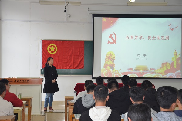 随后,学院党委副书记、副院长江平为学员们上了《五育并举,促全面发展》专题党课。党课回顾了党的十九大以来以习近平同志为核心的党中央对青年学生提出的各项希望与要求,强调当代大学生要有理想、有抱负、有追求、有担当。特别是在“大数据”时代,作为数学专业的学生更要练就过硬本领,磨炼品德修为,为实现中华民族伟大复兴的中国梦贡献青春力量。此外,还详细介绍了合肥工业大学“第二课堂成绩单”制度,希望同学们能够追求全面发展,提高个人素质,积极组织和参与科技创新、社会实践等各类活动,同时,还要求学生骨干要在学生、生活、工作等各个方面起到示范引领作用,创新性、创造性地开展工作。