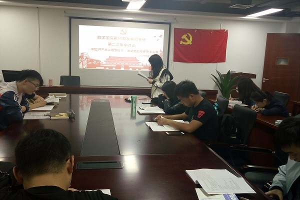 4月21日晚,数学学院第59期发展对象班开展第二次党课的集中学习与讨论在翡翠湖校区科教东楼1710举行,本次学习和讨论由张婧阳同学主持。