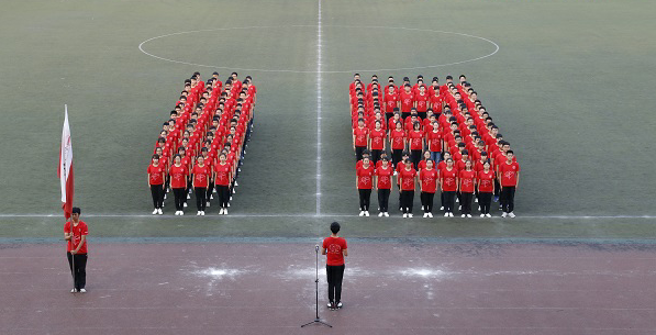 比赛中,数学学子们用整齐的队列“19”表达着在党的十九大胜利召开之际会不忘初心,继续前行,以实际行动为党的十九大献礼;用“吾辈少年当自强,少年激扬中国梦”的口号传递着青年的责任与担当。伴随着广播体操音乐声,同学们动作整齐划一,协调一致,赢得了评委老师的一致好评,最终荣获本次比赛一等奖。