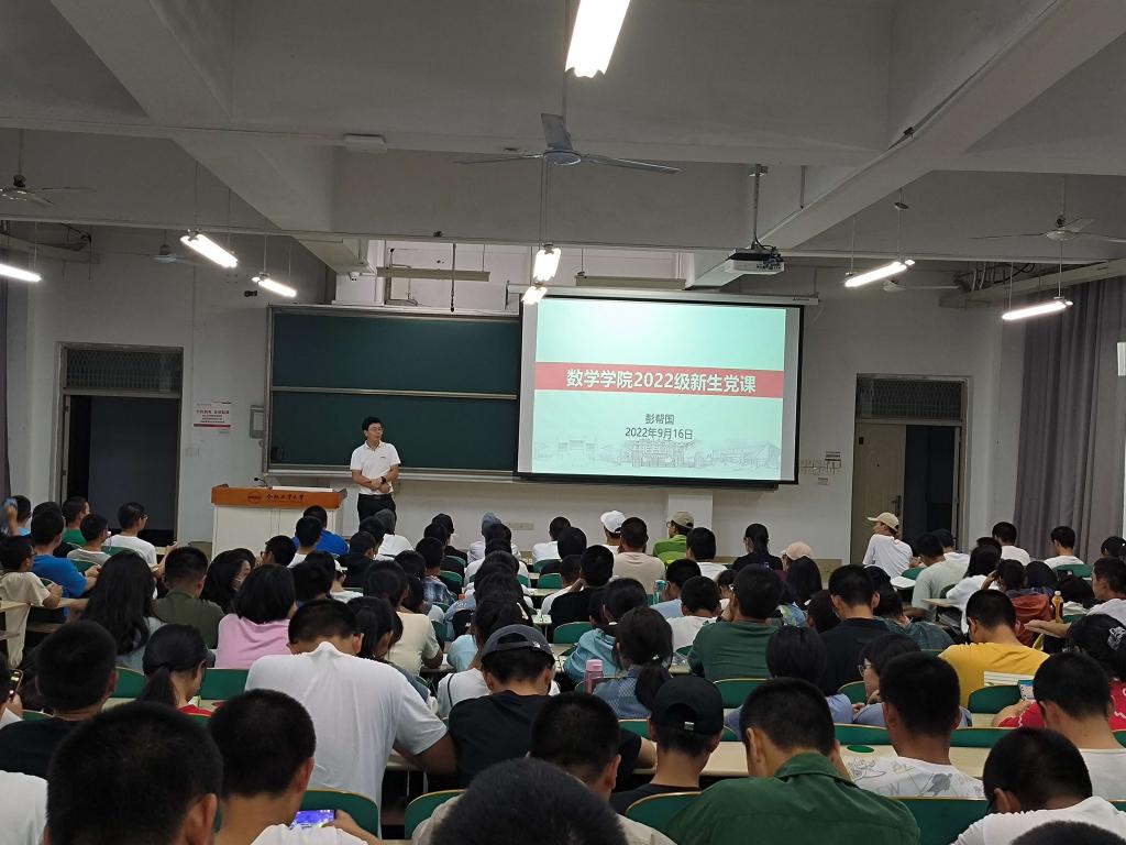 9月16日晚于翠三教101室,学院党委副书记兼纪委书记彭帮国以“共产党的十年辉煌”为题,为新生上了理想信念教育第一课。