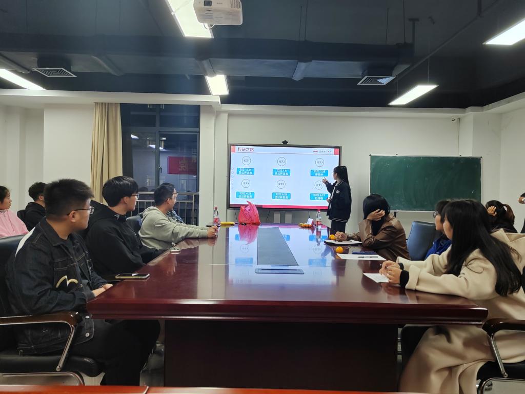 2022年11月26日晚,数学学院于科教楼B座1710成功举办了第233期研究生博睿沙龙。本期活动以“科研之路”为主题,邀请到学院优秀学生代表崔倩和胡航主讲,共有四十余位同学参加。