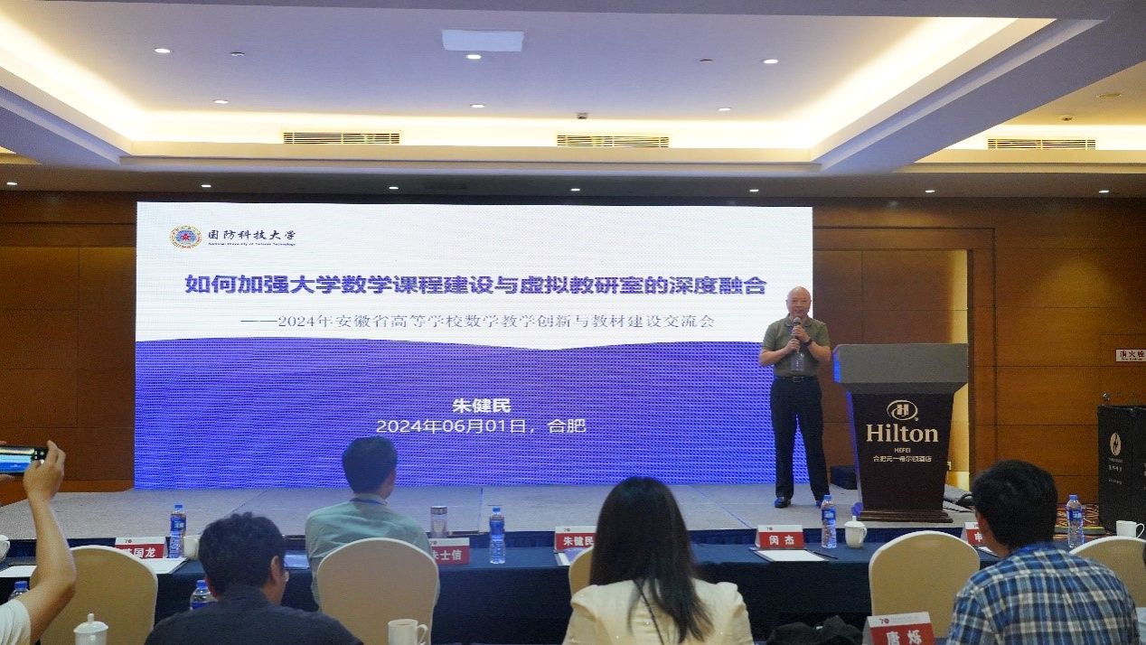 中国科学技术大学程艺教授、国防科技大学朱健民教授、西北工业大学张莹教授、合肥工业大学朱士信教授、阜阳师范大学储亚伟教授、清华大学杨晶副教授、高等教育出版社朱槿编辑分别以“一流课程建设的思考与实践”、“如何加强大学数学课程建设与虚拟教研室的深度融合”、“数智化背景下微积分课程的改革与创新”、“AI时代的大学数学教材建设的探索与实践”、“基于知识图谱的课程优化与智慧教学”、“数学基础课中融入四维式课程思政的实践与探索” 和“创新驱动 构建高质量教材体系”为题做了分享报告。