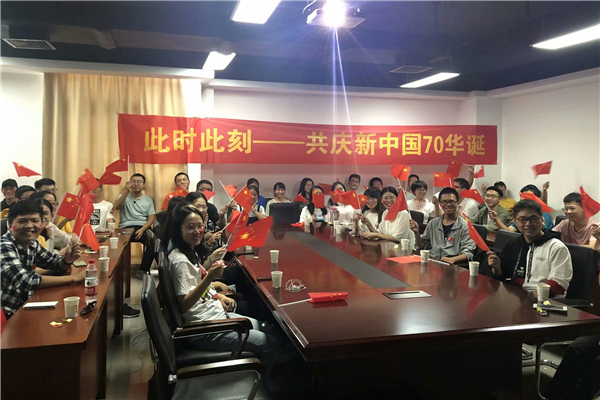 10月1日上午,数学学院组织师生于翠科教楼B座1710观看了中华人民共和国成立70周年国庆阅兵直播,同升一面旗,共唱一首歌,共同庆祝祖国母亲70周年生日,共同纪念这一必将载入史册的国家盛典。
