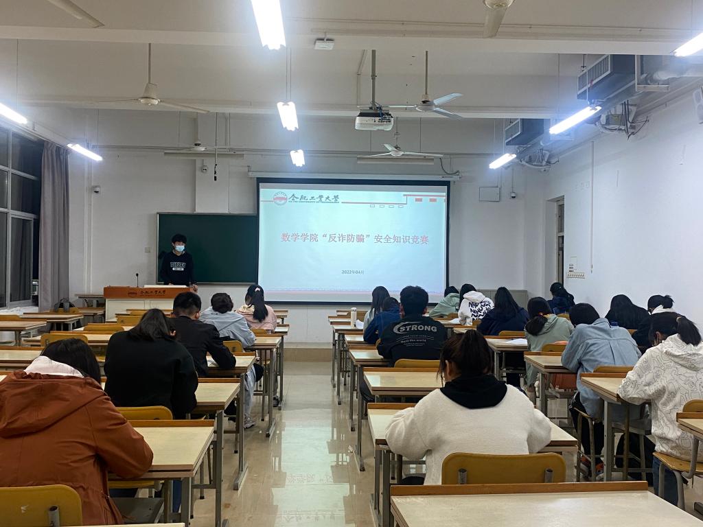 组织一次防诈骗知识竞赛。4月16日晚,数学学院“反诈防骗”安全知识竞赛在翡翠湖校区4教405教室举行。竞赛分为选择题和判断题两部分,参赛同学利用所掌握的电信诈骗知识和反诈技巧熟练答题。经过激烈角逐,罗梦获得一等奖、李格菲和王淑娇获得二等奖、赵筱珮等3名同学获得三等奖。
