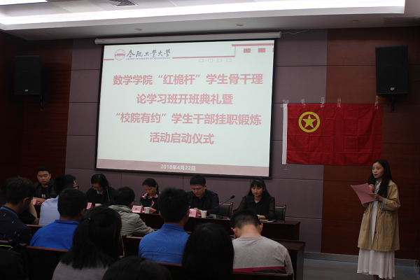 仪式在庄严的《中国共产主义青年团团歌》中开始,学院2015级、2017级辅导员房虹姣老师布置了理论学习班教学实施方案,并对学习纪律提出了相应要求;校团委刘政老师宣读了《数学学院“校院有约”学生干部挂职锻炼活动细则》,并希望被推荐到校学生会挂职锻炼的学生干部们能够珍惜机会、认真学习、勤于思考、用心感悟。