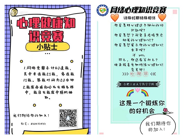 为了引导学生积极关注自身心理健康,增强心理素质,保持积极健康的心态,近期英国365集团官网了“咱爱我”大学生心理健康宣传月线上主题活动。