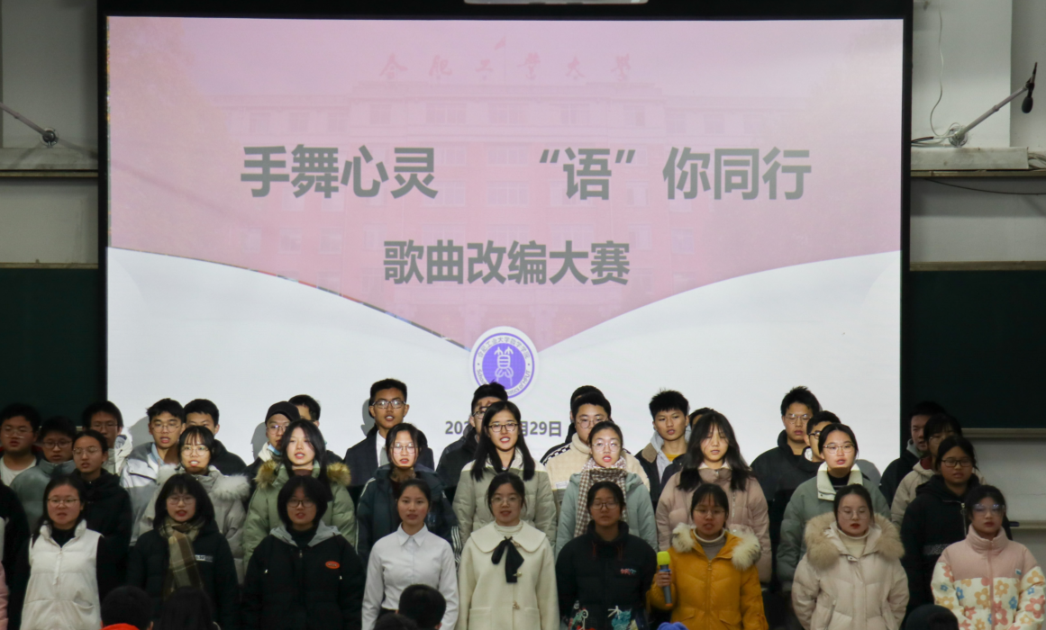 12月29日晚,数学学院“手舞心灵 ‘语’你同行”歌曲改编大赛在翡翠湖校区二教101举行。