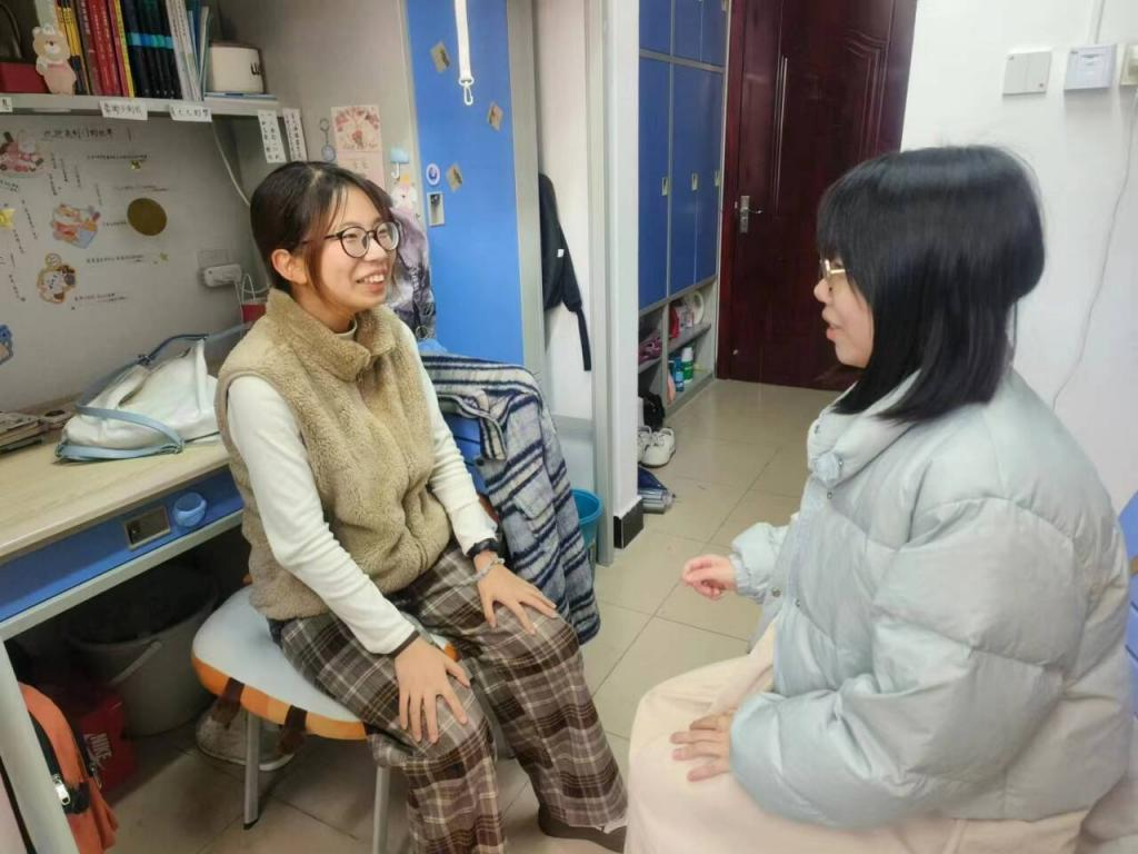 活动开展期间,学生党支部采用“双人结对”模式,为每个本科新生寝室匹配专属党员对接小组。党员们先以倾听者身份,细致捕捉新生在学业适应、生活融入、未来规划方面的困惑,再结合自身经验提供针对性指导——小到课程学习方法、校内资源使用技巧,大到未来发展规划、社会实践经验,都逐一耐心分享。